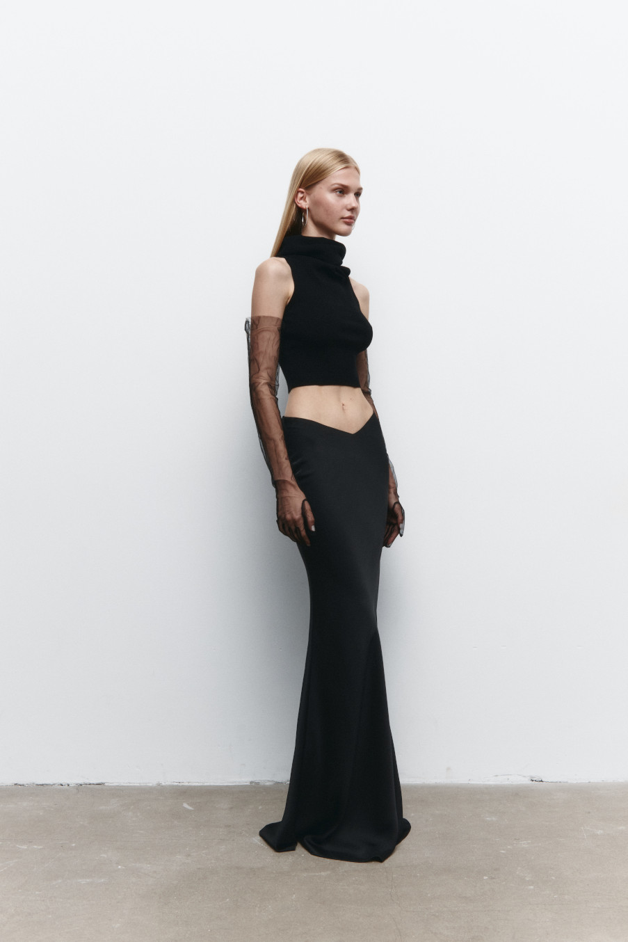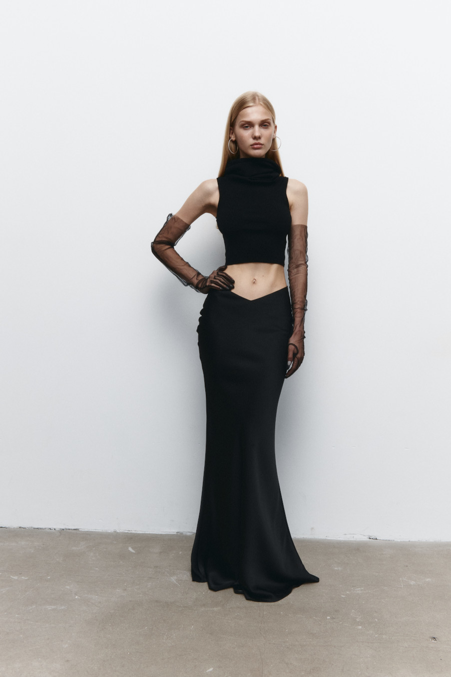 Юбка "Angle" в длине макси из плотного струящегося шелка, юбка скроена по косой, создает облегающий силуэт и подчеркивает изгибы фигуры, не стесняя движений и создавая максимальный комфорт. Верхний край юбки в форме наклонных линий визуально моделируют талию.