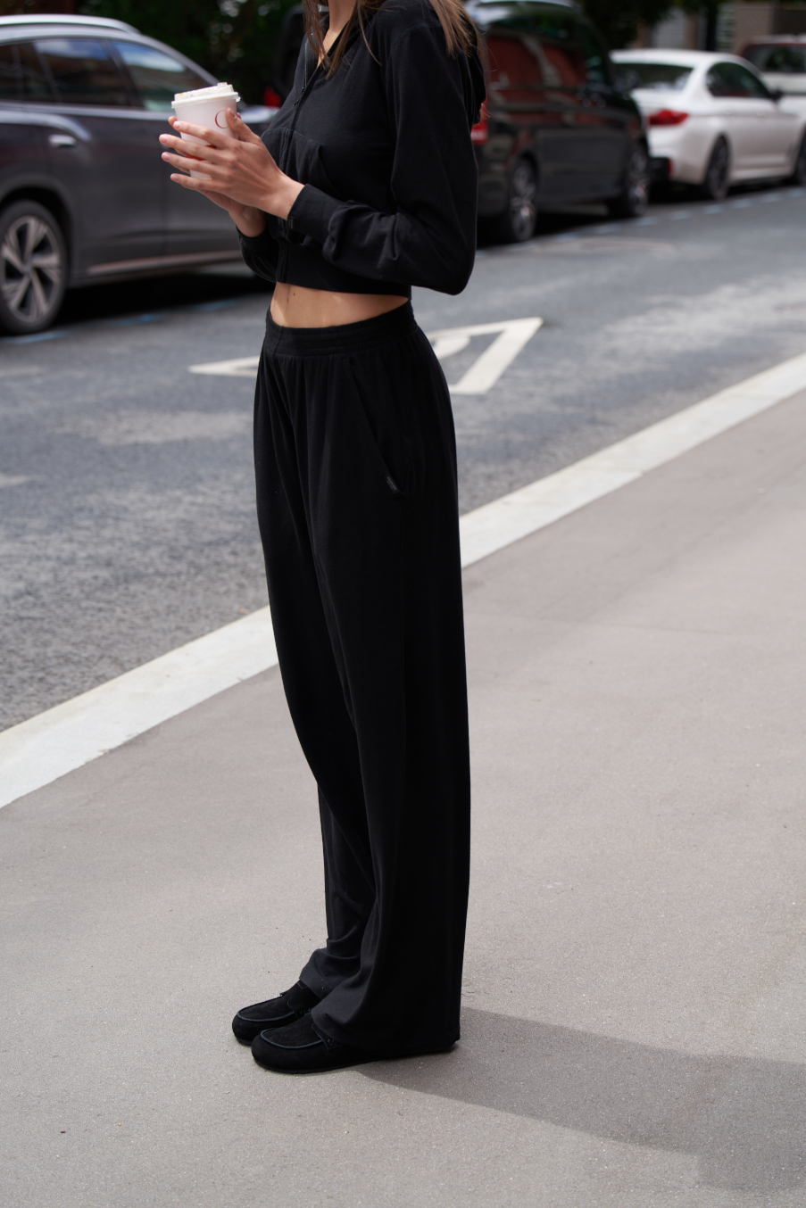 Брюки, выполненный из итальянского хлопка, ручной работы, с широким поясом на кулискае и карманами.