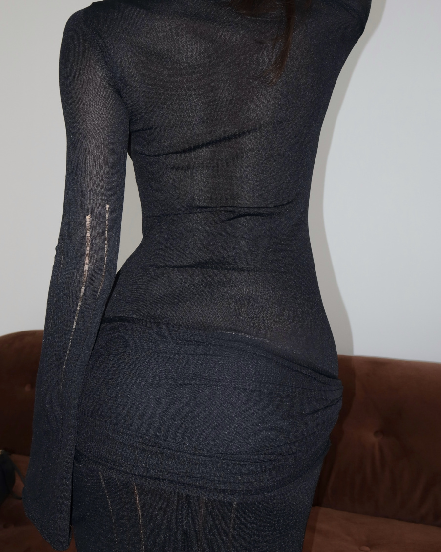 Облегающее трикотажное платье из премиальной вискозы с акцентом на декоративном поясе на бедрах и тонким разрезом в форме капли спереди.