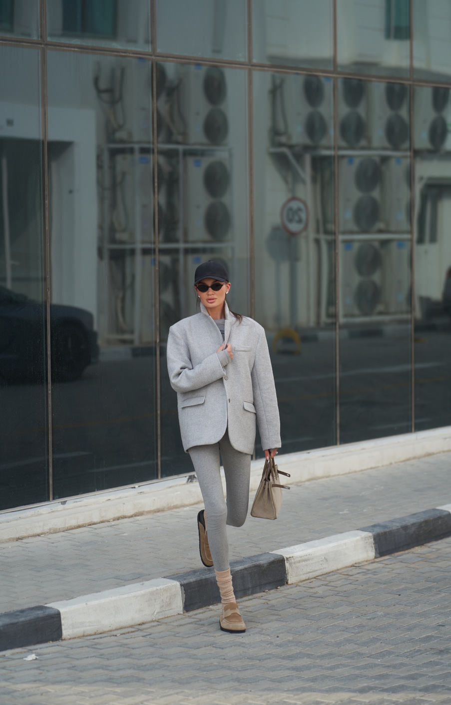 Однобортный жакет оверсайз из кашемира и шерсти с прорезными карманами. Расслабленная посадка, прямой крой делают его незаменимым  в холодное время года.