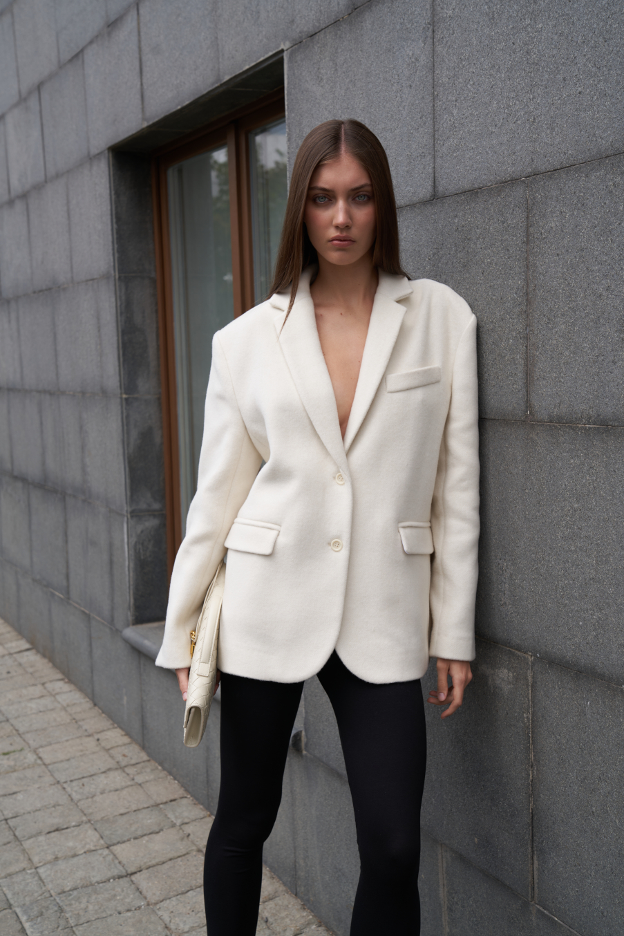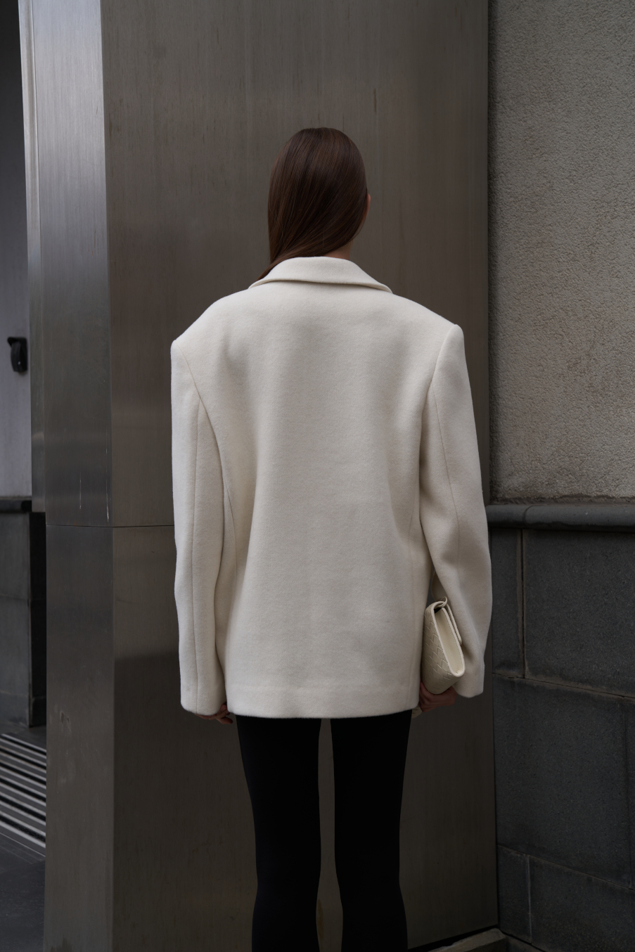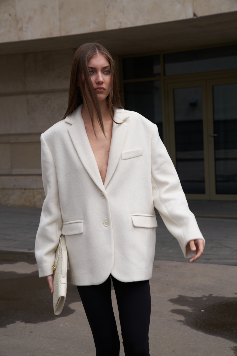 Однобортный жакет оверсайз из кашемира и шерсти с прорезными карманами. Расслабленная посадка, прямой крой делают его незаменимым  в холодное время года.