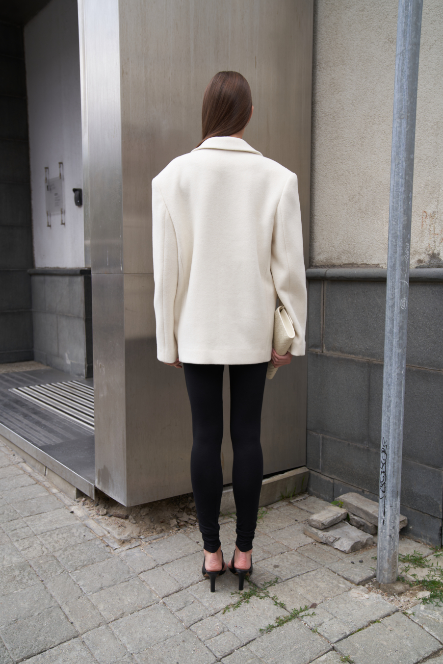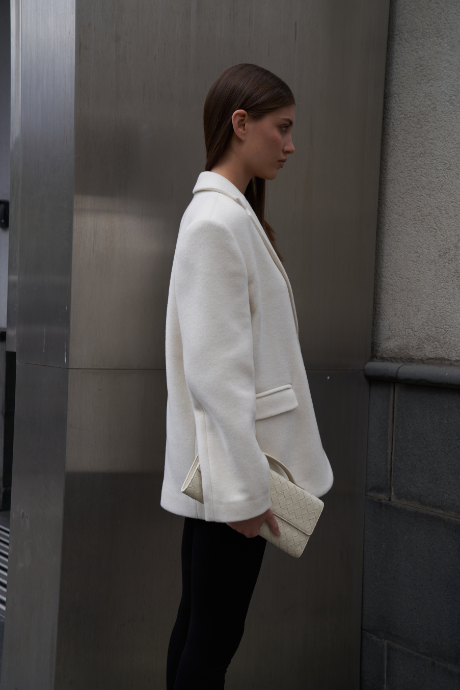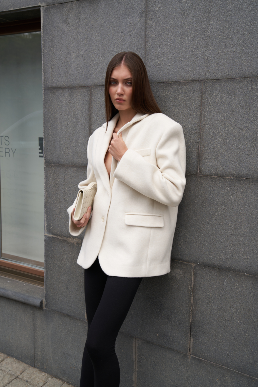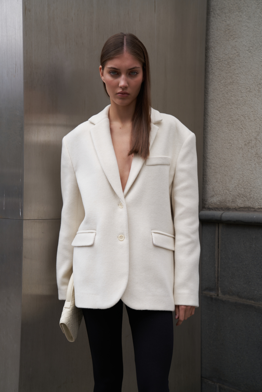 Однобортный жакет оверсайз из кашемира и шерсти с прорезными карманами. Расслабленная посадка, прямой крой делают его незаменимым  в холодное время года.