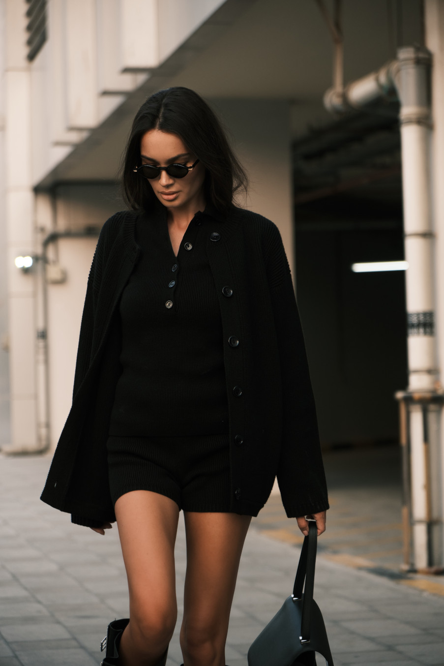 Шорты создают теплый и современный образ с кардиганом. Изготовленные из кашемира и шерсти мериноса, они идеальны для прохладных дней, а вискоза придает мягкость и легкость.