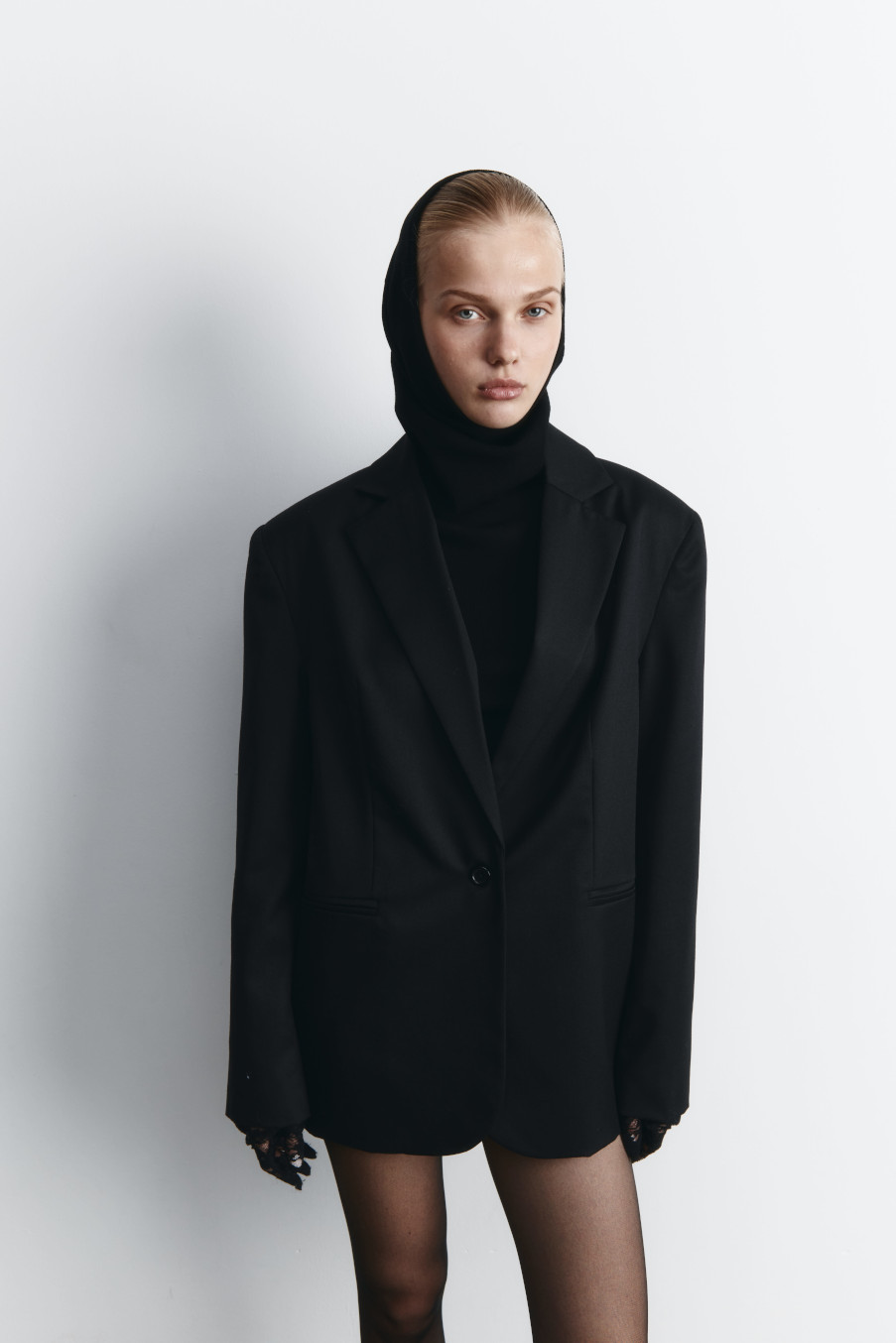 Однобортный жакет оверсайз из премиальной шерсти с прорезными карманами. Расслабленная посадка, прямой крой